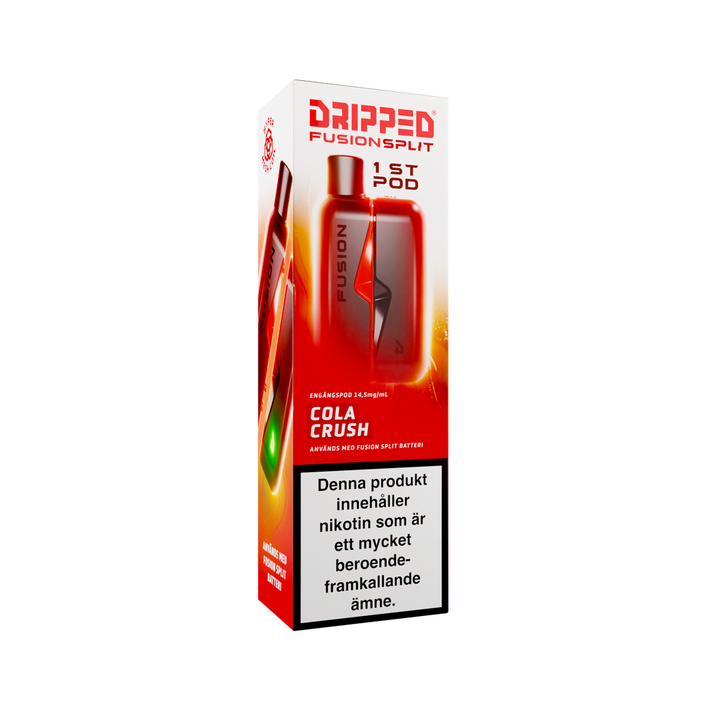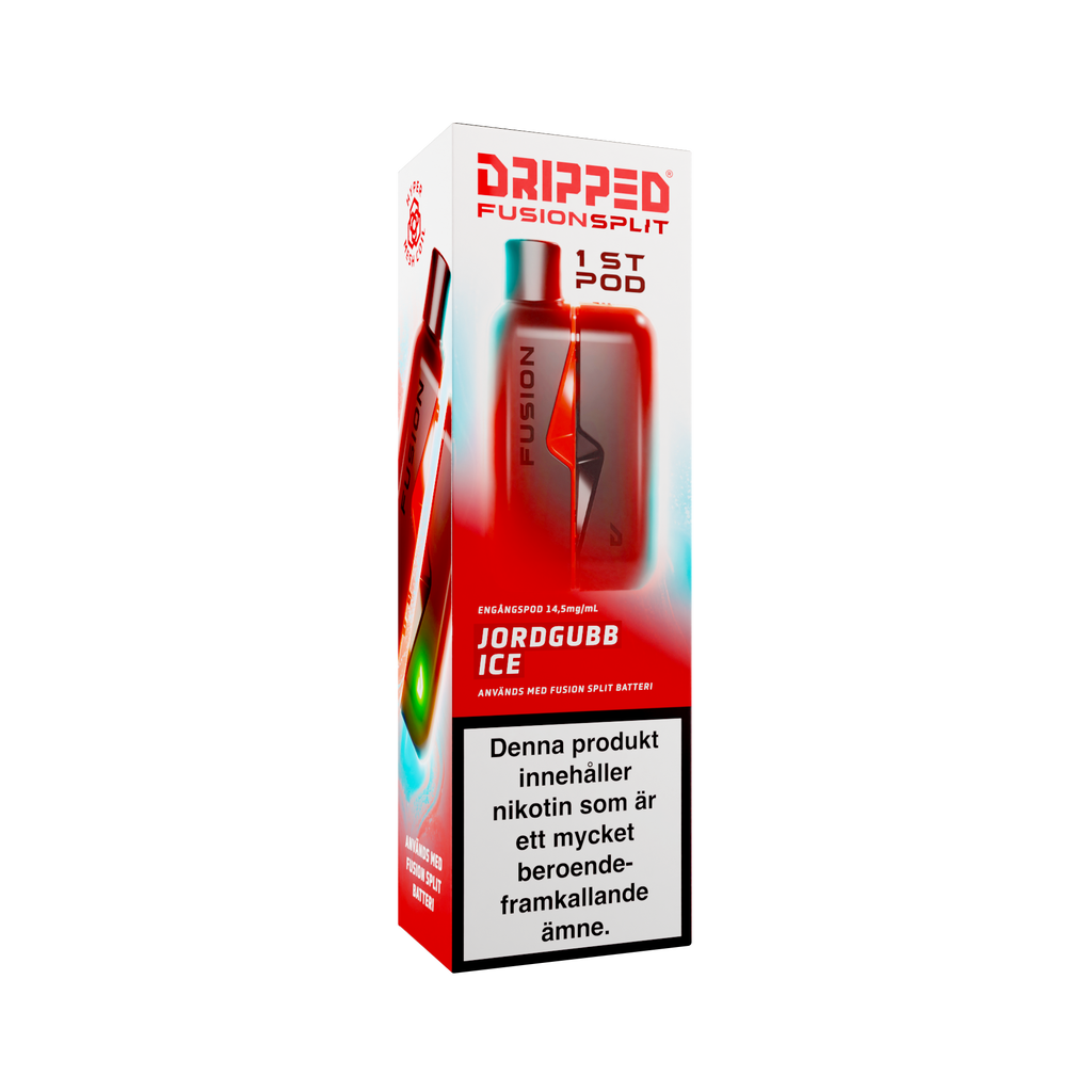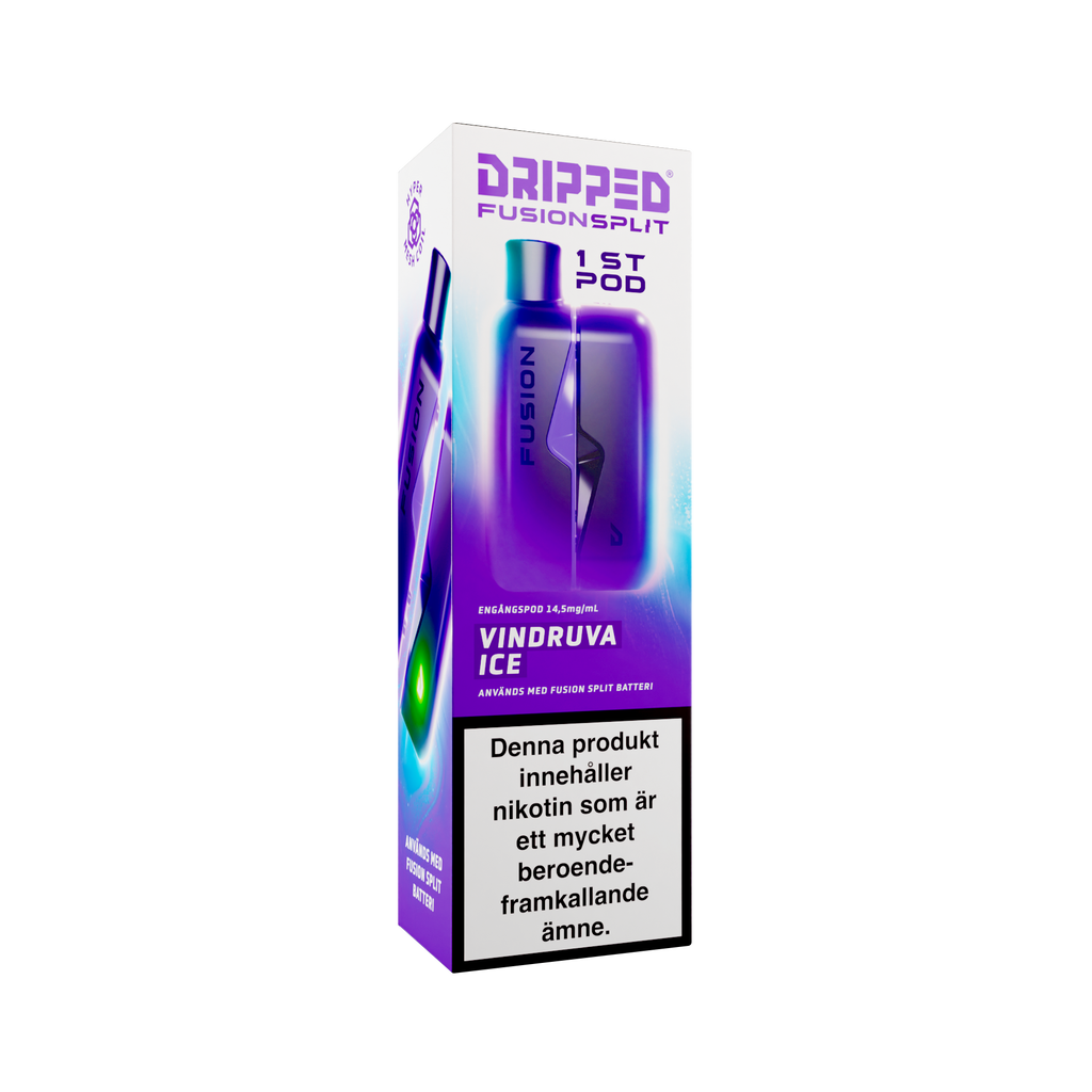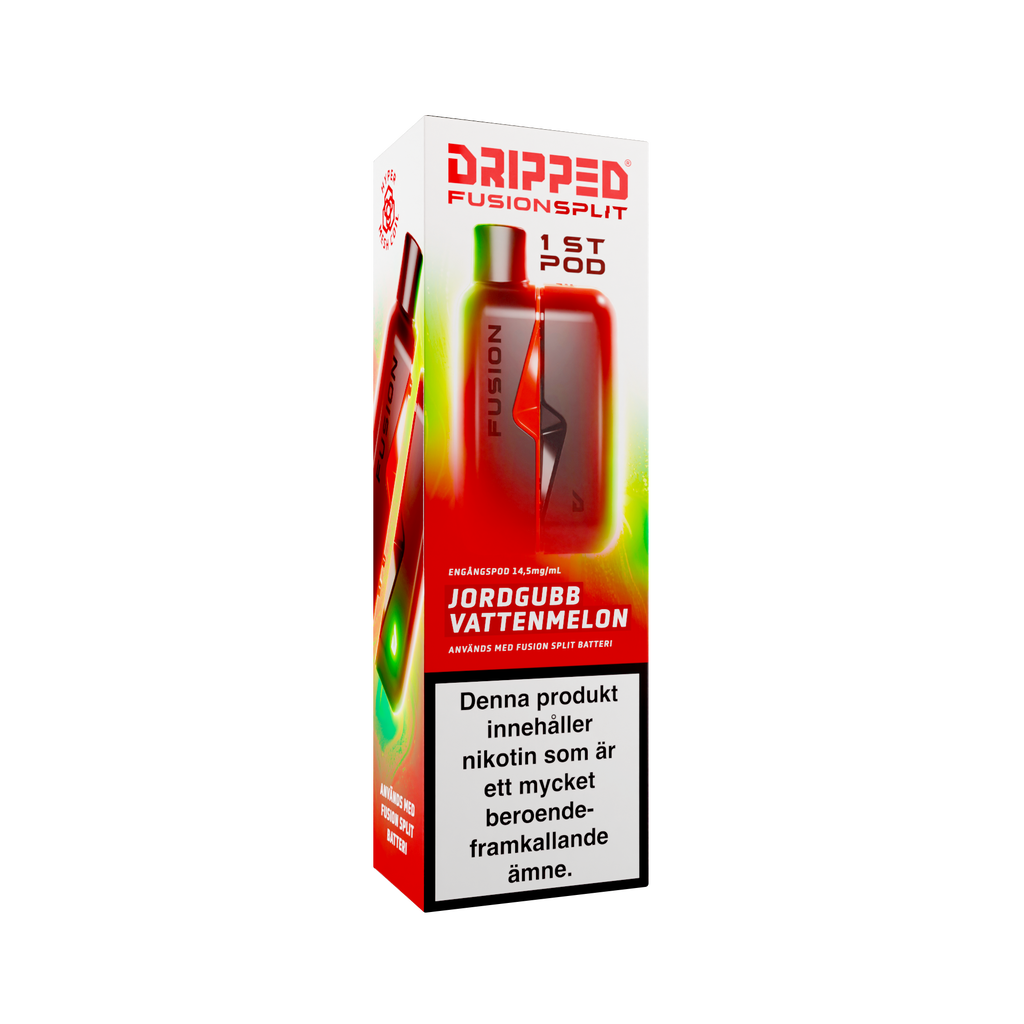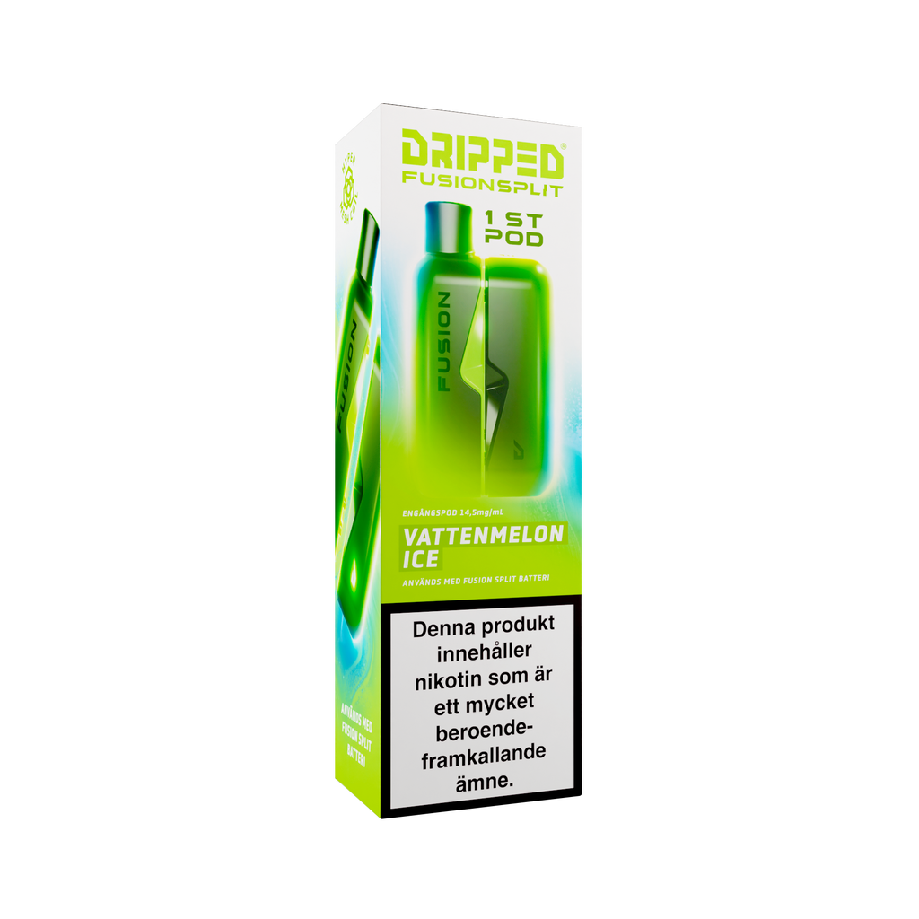 Nya Dripped Fusion Split Podsystem är en smidig produkt som använder sig av magneter för att koppla ihop den färdigfyllda podden med batteriet. Dripped Fusion Split har även ett lättåtkomligt fack där batteriet sitter för att enkelt kunna koppla loss batteriet ifrån elektroniken för att återvinna delarna separat. Dripped Fusion Split Färdigfylld Pod innehåller 1st pod fylld med 2ml av valda vätskan med en styrka på 14.5mg/ml.