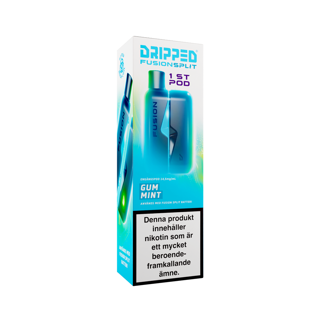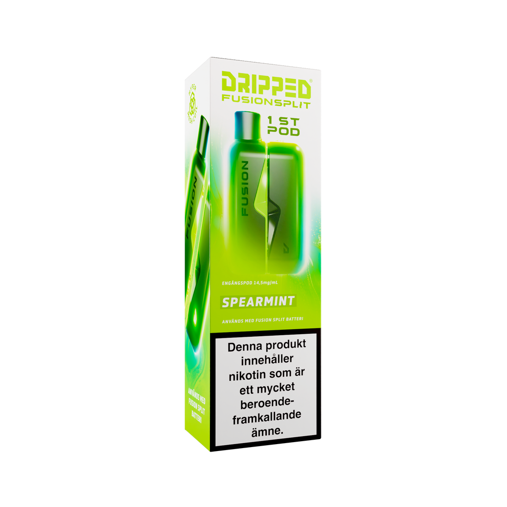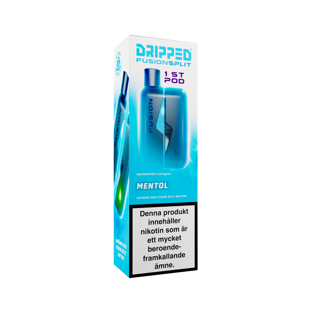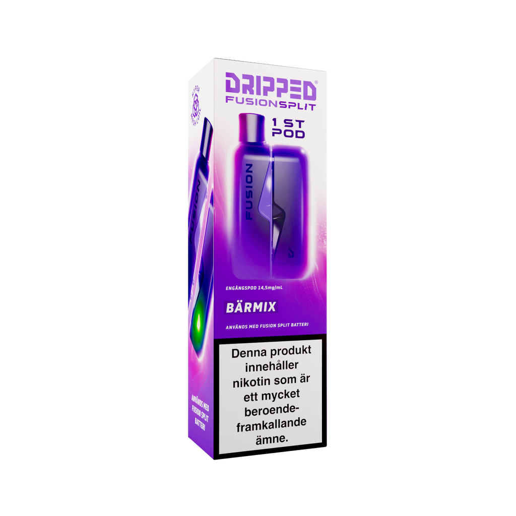Nya Dripped Fusion Split Podsystem är en smidig produkt som använder sig av magneter för att koppla ihop den färdigfyllda podden med batteriet. Dripped Fusion Split har även ett lättåtkomligt fack där batteriet sitter för att enkelt kunna koppla loss batteriet ifrån elektroniken för att återvinna delarna separat. Dripped Fusion Split Färdigfylld Pod innehåller 1st pod fylld med 2ml av valda vätskan med en styrka på 14.5mg/ml.