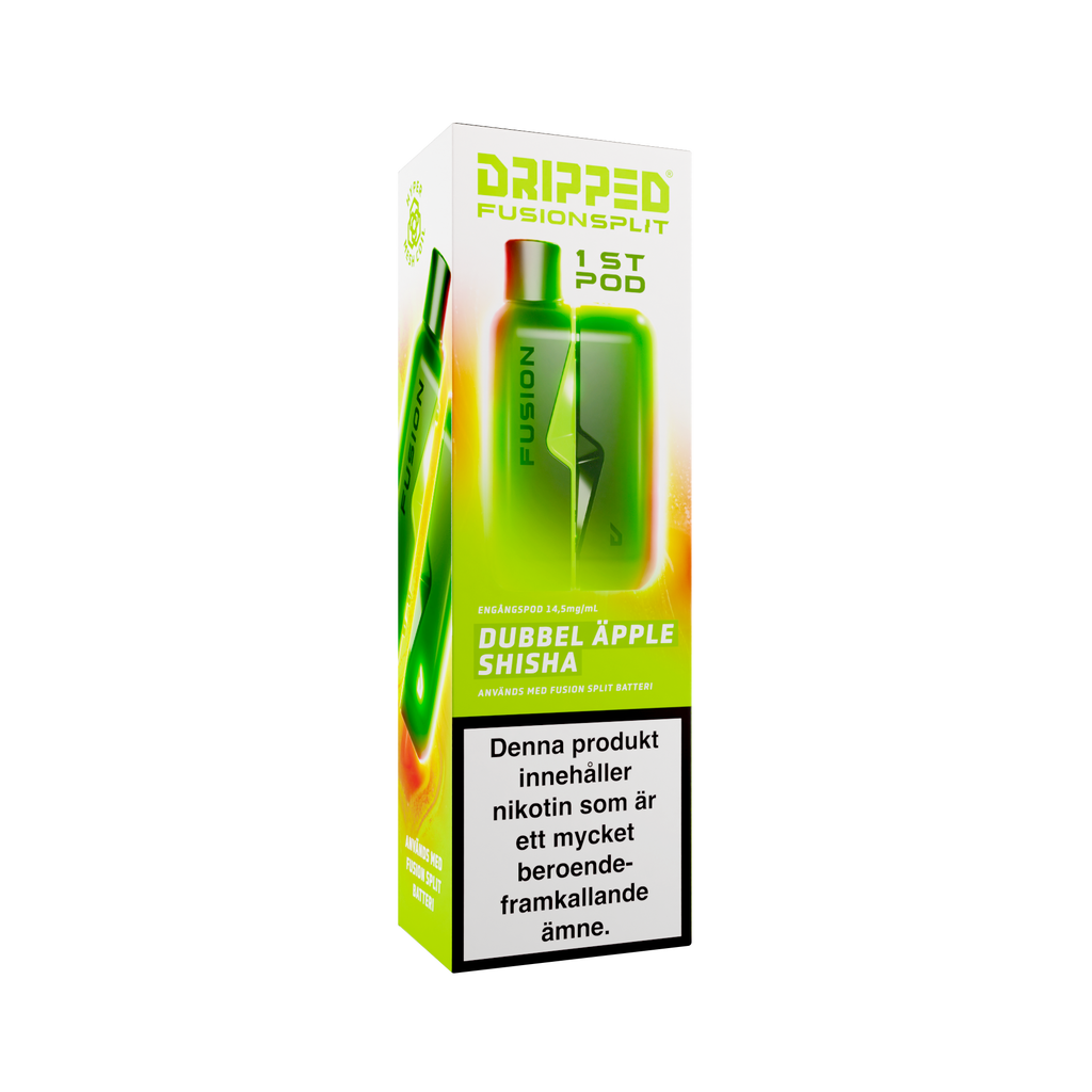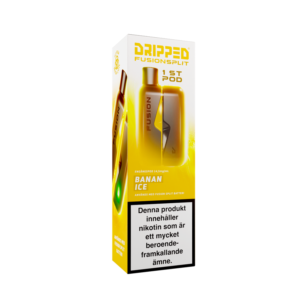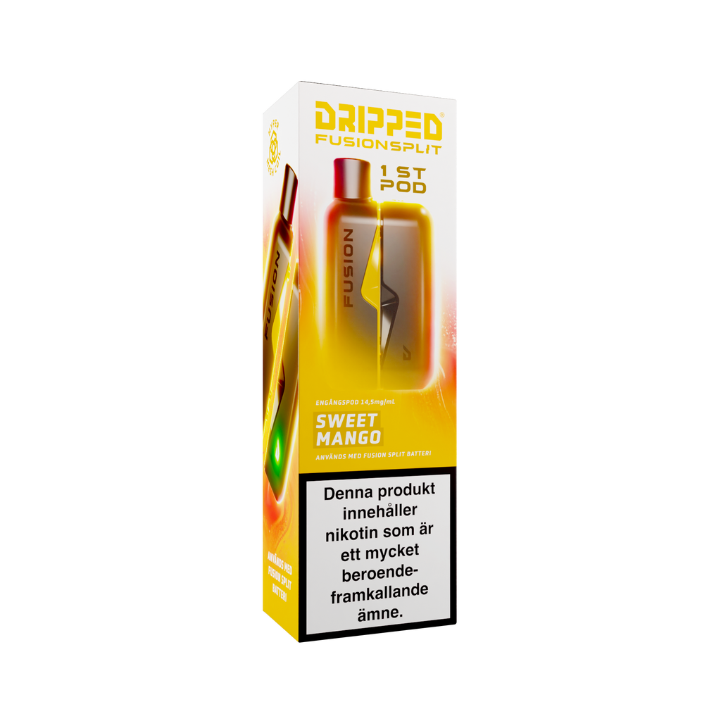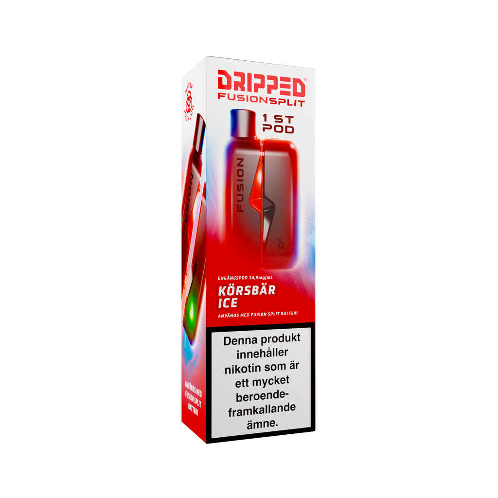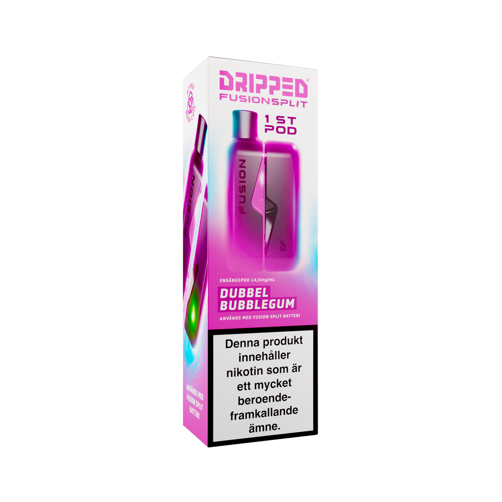 Nya Dripped Fusion Split Podsystem är en smidig produkt som använder sig av magneter för att koppla ihop den färdigfyllda podden med batteriet. Dripped Fusion Split har även ett lättåtkomligt fack där batteriet sitter för att enkelt kunna koppla loss batteriet ifrån elektroniken för att återvinna delarna separat. Dripped Fusion Split Färdigfylld Pod innehåller 1st pod fylld med 2ml av valda vätskan med en styrka på 14.5mg/ml.