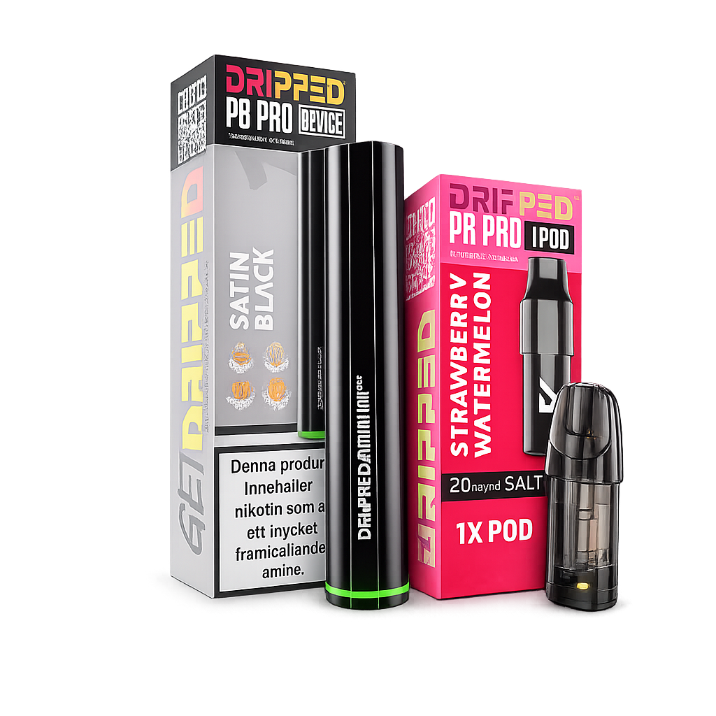 Panther Bar Startpaket Dripped Panther podsystem 128 kr Paketet innehåller 1 st x Dripped PB Pro - Batteri 1 st x Dripped PB Pro - Färdigfyllda Pods 1-pack Relaterade kategorier Vapes & E-cigg Färdigfyllda Podsystem